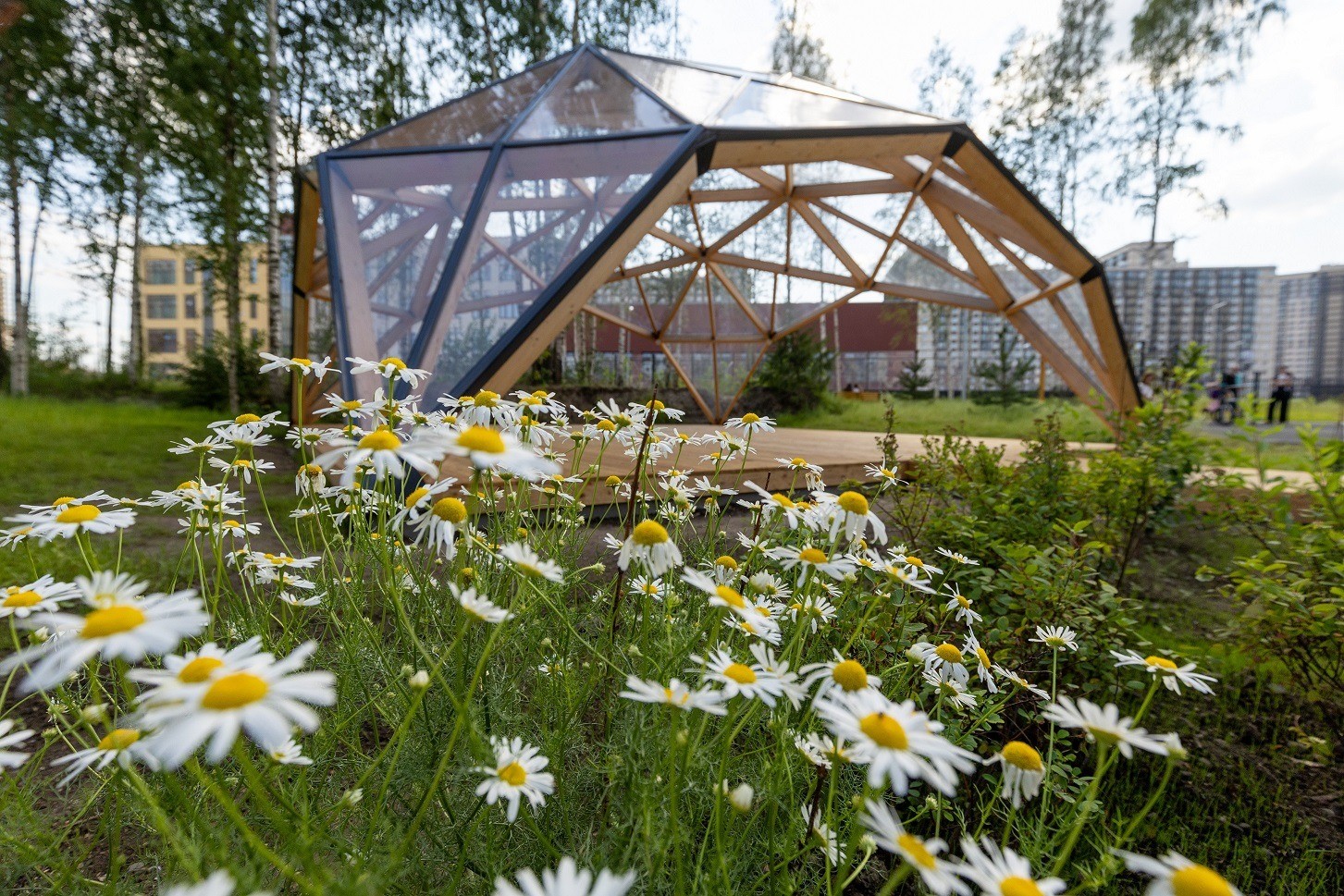 Для фанатов медитативного отдыха, а также для спокойных активностей открылось атмосферное место с деревянным настилом и навесом, которое подходит для занятий йогой или лечебной физкультурой. Универсальное пространство адаптируется под потребности жителей, которые уже начали формировать расписание спортивных занятий. По плану здесь также будут проходить бесплатные йога-практики для всех желающих, организованные управляющей компанией «Юнтолово» — «Эксплуатация ГС-СПб».