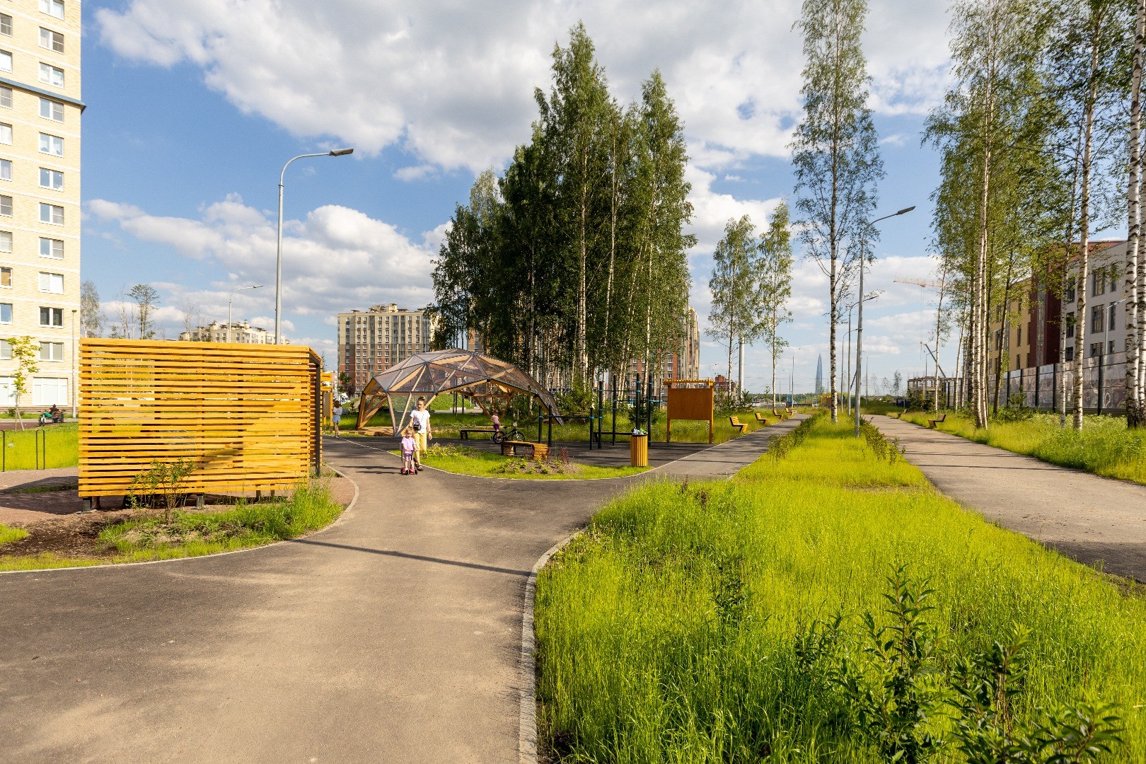 Общественное пространство стало вторым этапом реализации концепции прогулочных аллей в экорайоне «Юнтолово», призванных связать окружающий лес и Юнтоловский заказник с будущим Центральным парком комплекса. Благодаря удачному расположению на одной из главных улиц — Юнтоловском проспекте — пользоваться новыми местами для отдыха, досуга и занятия спортом смогут жители всех существующих кварталов.